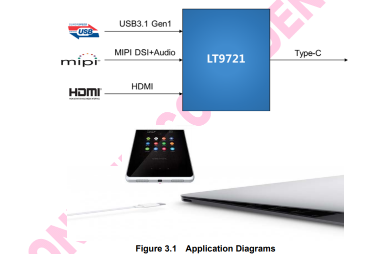 Lontium LT9721是MIPI / HDMI到DP轉換器,內置Type-C交替模式開關和PD控制器。
