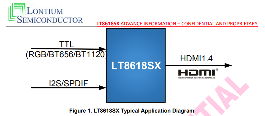 The LT8618SXB is Lontium's low power version HDMI transmitter based on ClearEdgeTM technology. It supports the 24-bit color depth HDMI 1.4 (High Definition Multimedia Interface) specification. They are fully backward compatible with Lontium's first generation HDMI transmitter LT8618SXB.
