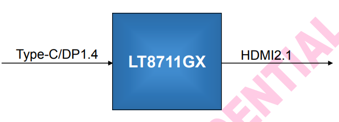 The LT8711GX is a high performance Type-C/DP1.4 to HDMI2.1 converter, designed to connect a USB Type-C source or a DP1.4 source to an HDMI2.1 sink.